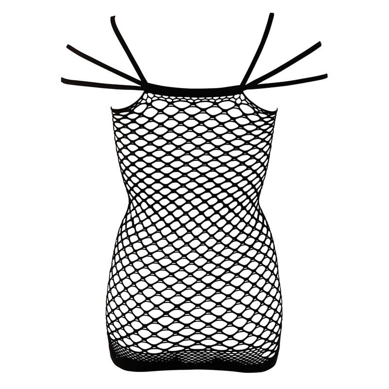 Katės kostiumas, primenantis trumpą gundančią suknelę, pasiūtas iš storesnio, bet reto tinklelio sluoksnio. Visas kostiumas atviras, nėra jokių uždengtų kūno vietų. Apatinė dalis dekoruota plonesniu ir tankesniu raštu, medžiagine juosta.